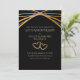 Bjud in vänner och familj till en vacker gyllene 50-års bröllopsjubileumfest med detta förhandsinbjudningskort. Anpassa denna unika eleganta jubileumsförhandsinbjudan med parets namn, evenemangets plats, festdatum och mer redigerbar text efter behov. Jag har skapat denna originella moderna gyllene svängande valvdesign mot en svart bakgrund åt dig. Det är inte guldfolie. Den enkla samtida gyllene bruna typografin kan redigeras. De två sammanflätade hjärtana ger en romantisk chic touch. Enkel, elegant handskriven text som säger "50-års jubileum" kan redigeras till vilket nummer som helst för ett 25-årsjubileum eller ett annat jubileumsår om det behövs.