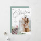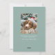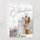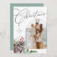 Det här helgdag av fotokortet innehåller ett foto i familjen som är inramat i en trendig-båge. Elegantens text lyder God jul. Den innehåller handdragna botaniska vinterprodukter, inklusive bär, gräs, pinekoner och löv. Det finns ett foto på baksidan med ett personligt meddelande som du väljer.