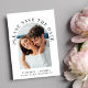Modern bröllop spara datum-kort med ditt foto i en båge ram omgiven av "Spara datum" i elegant. Under fotot lägger du till ditt första namn, bröllop-datum och plats. På motsatt sida anpassar du datuminformationen i enkel typografi.