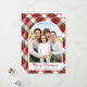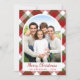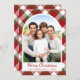 Elegant holiday greeting card featuring your photo in an arch frame on a cheerful red, green and white seasonal plaid background and "Merry Christmas" showcased in s stylish red script. Personalize with your name and the year in simple red lettering.