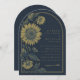 Elegant Arched Navy och Solros Bröllop Inbjudningar