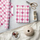 Rosa och lila argyle-mönster med sammanlänkande diamanter på en vit bakgrund, skapar en klassisk, lekfull utseende med en känsla av värme och livfullhet.