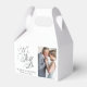 Elegant bröllop-årsdag Vow Renewal Photo Favor Boxes med elegant-skripttypografi i modern, klassisk svart och vit. Lägg enkelt till två av dina egna foton och detaljer för en roligt-förmånslåda! Om du behöver hjälp med designen eller matchande produkter kontaktar du oss på bkthompsondesigns@gmail.com.
