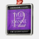 Högtidlighålla 12:e silke bröllop-årsdagen med denna minnesvärda prydnad! Elegantens vita bokstäver på en lyxig bakgrund i lila silke lägger till en minnesvärd hand för detta speciella tillfälle och denna milstolpe. Anpassa med parets namn, bröllopsdatum och gratulationer. Design © W.H. Sim. Se mer på zazzle.com/expressionsoccasions