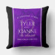 Högtidlighålla 12:e silke bröllop-årsdagen med snyggten dekorativ kudde! Elegantens brev på en lyxig lila silke-bakgrund som är utdragen av svart pub lägger till en minnesvärd beröring för detta speciella tillfälle och milstolpe. Anpassa med parets namn, data i giftermål och gratulationer. Omvänd visar identisk design. Design © W.H. Sim. Se mer på zazzle.com/expressionsoccasions