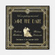 Spara datum magneter. Klassisk konst deco ram och elegant-typografi med en guld-silhuett av en brud och en groom. Anpassa med namn och datum.