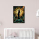 En sofistikerad silhuett av en kvinna i en lång klänning som står på en geometrisk piedestal. Mot en strålande gyllene soluppgång fångar detta konstverk perfekt 1920-talets "Great Gatsby" glamour och elegans.