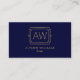 Initialer blir ett monogram för eleganten på den här konsthandboken för visitkortsmallen. Den enkla texten och designen är professionell och tidslängd. Sätt in ett faux guld på mörkens marinblått för en elegant. © 1201AM-KREATIV