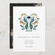 Den här eleganten Spara datumkortet från Gatsby-samlingen har handritade blommigtar av konsthandeln-stil i nyans av marinblått och turkos med en gult av senap. Innehåller utrymme för förlovningens foto på baksidan!