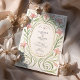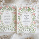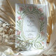 Fira din union med den här fantastiska bröllopsinbjudan, ett mästerverk av Art nouveau-design. Det här eleganten har en vacker vattenfärgad illustration av ömtåliga rosor, omgiven av en perfekt symmetrisk vinodling i grönt. Dina uppgifter om personlig bröllop visas i ett sofistikerat ovalt ram, framhävs med faux guld accents för en aning shimmer. Den romantiska, konstnärliga och tidlösa känslan av inbjudan gör det till ett perfekt val för ett trädgårdsbröllop, ett vintage-inspirerat firande, eller för ett par med kärlek för klassisk konst. All text är helt anpassade att på ett klokt sätt tillkännage din speciella dag.