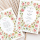 Inbjudan dina gäster med en luft av ömtålig romantik med hjälp av den här fantastiska bröllopsinbjudan som inspirerats av Art nouveau. Den här designen har en vacker vattenfärgad illustration av mjukt rosa ros och ömtåliga knoppar, som växer på vindruvor med grönt som roar sig. Blommigt-teckningar utgör en elegant, öppnar ram och skapar en utställningsväska för perfekt för din bröllop-information. Den sofistikerade typografin, som har ett klassiskt serif-teckensnitt som parats med ett känsligt skript, förbättrar tidslinjen och romantiken. Den här inbjudan är ett utmärkt val för ett klassiskt trädgårdsbröllop, ett vintage-inspirerat firande eller alla elegant vår- eller sommarmedborgare.