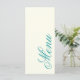 Perfect for garden weddings, romantic outdoor celebrations, or classic indoor receptions, this menu adds a timeless and artistic touch to your table décor. The soft teal tones and subtle golden accents complement a wide range of wedding color palettes, from natural greenery themes to more formal settings.
