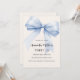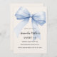 En mjuk beige, gräddvit färgad, dekorerad med en stor ljusblå båge. Anpassa och lägg till information om namn och party.