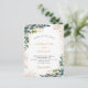 En vit bakgrund som dekorerats med eukalyptus grenery och guldblad. Anpassa och lägg till information om namn och bröllop. Svart och guldfärgad färgad brev. Tips! Om du inte vill att det ska se ut som ett vykort klickar du på anpassa, går till baksidan och tar bort delaren och lägger till frimärke.