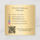 Öka ditt varumärke med våra elegant Faux guld-affärskort som har en fantastisk guldfjärilskonstruktion. Perfekt för kvinnliga företagare, makeup artists, skönhetsalonger, formgivare och oberoende artister. Varje kort innehåller en generator för QR-kod som skapar en unik kod som länkar till webbplatsen eller mediet i social. Facebook- och Instagram-ikoner. Gör ett minnesvärt intryck med stil och funktionalitet!