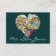 Affärskort i blommigt Heart. Hjärtat fyllt av blommor som symboliserar ett hjärta fyllt av naturskönhet eller skönhet av något slag, fyllt med kärlek och med omsorg om andra och jorden och allt i det. För Insida Designer som bryr sig om sina kunder och jorden och allt i den. Eller för alla affärskvinnor som bryr sig om Guds skapelse och allt och alla i det.