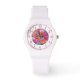 Eleganten Womans Watches i färglös Faux-broiderad Blommigt har en färgstark modern faux-brodery-blommigt för rosa, lila, orange, blått och gult. Skapat av Evco Studio www.zazzle.com/store/evcostudio