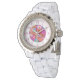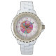 Eleganten Womans Watches i färglös Faux-broiderad Blommigt har en färgstark modern faux-brodery-blommigt för rosa, lila, orange, blått och gult. Skapat av Evco Studio www.zazzle.com/store/evcostudio