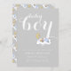 Grått-typografi med sovande dusch elegant- i pojke, med texten pojke i vitt på ljus grått-bakgrund och pojke i ljusblå kläder som sover på ett moln och gult-halvmånen måne. Ett sovande pojke mönster täcker det svarta. Du kan ändra bakgrunden till färg. En inslag av Trina Clark.