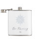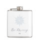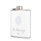Isblåsnowflake vinterbröllop med kalligrafi av eleganten "Be Merry" och privat engradig höftkolv. Detaljerad isig blå snöflingdesign. Anpassa med möhippans partis initialer. Designad för att matcha vår isblå snöflingasöksamling.
