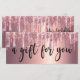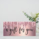 Den här fantastiska presentkortsdesignen har faux rosa & koppar ro guld som droppar glitter metallisk struktur och elegant kalligrafteckensnitt.