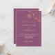 En modern, elegant och minimalistisk bröllopsinbjudan. Plum, lila färgad bakgrund som dekoreras med faux guld blommigts. Anpassa och lägg till information om namn och bröllop.