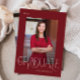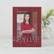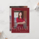 Det här studenten-annonskortet med elegant-rött har modern student-typografi med ett foto på framsidan och ett fullt bakåt på kortet.