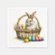 Vattenfärgsfärgad Påskhare i basket med färgstarka Påskägg.Elegant Vattenfärgad Art pappra blöjor. Kan vara personlig.