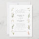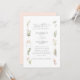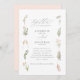 Elegant av vildblommor i blommigtens söt rosa Romly rustic ladags bröllopsinbjudan. Vildblommor med vattenfärg, botanisk blommigt, blad och champagne och vin illustrationer. En del av en matchande samling.