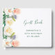 En gäst bok för en romantisk 50:e (eller någon ålder) födelsedagsfest. Dekorerad med stora, lush vattenfärgade sommarblommor, blommigt rosor och peonier i vitt, korall och ro guld. Chicens vita bakgrund. Titeln: Gäst Bok är skriven med ett modernt handskript i stil. Grönt färgad brev. Rygg: lägg till din egen text, grönt brev Bakåt: vit bakgrund och blommor.