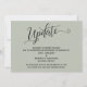 Den här svitens distinktion beror på det avancerade, roterande skriptteckensnitt som används för accentfraser. Om du behöver meddela dina gäster att bröllop har ställts in, kan du välja en elegant. I det här biet används calligrafteckensnittet för att skapa ett grafikobjekt som skildrar "Uppdatera" från ord. Använda mallen fält om du vill lägga till dina personuppgifter och göra den till din egen. Bakgrunden kan ändras till valfri färg. Var god kontakta alla speciella förfrågningar eller anpassa hjälpen. 98 //