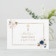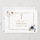 Utmärkt kortdesign med vattenfärgad delikat rosa blåa blommor, grönt löv, blommor med guld skisserade fingrar, en gyllene kor, en faux guld ram, på vit bakgrund. Använda Anpassa verktyg om du vill lägga till information, ändra typsnitt, teckensnittets färg. Om du vill ha matchande artiklar kan du besöka min samling för Baptism i Guld.