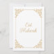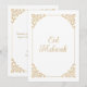 Elegant Eid Mubarak islamisk muslimsk platt kort för högtider. Fira en glädjefull och lycklig Eid ul-Fitr eller Eid ul-Adha med din familj och vänner genom att skicka detta speciella gratulationskort. Lyxig vit elfenbensfärgad bakgrund med en förgylld vintage barock bladverkssnurr i hörnet av ramens kant. Klassisk gyllene script kalligrafi teckensnitt är skrivet på framsidan och baksidan. Du kan anpassa kortets färg och teckensnittstyp och storlek för att göra det unikt för dig. Välgångsönskningar. Utskriftsbart. Hennes linje för design på Zazzle.
