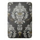 Ett lyxaktigt och ornerat dammmönster som har skarpa motiv för vit och guld blommigt mot svart bakgrund. Utformningen är ett klassiskt och sofistikerat estetiskt material som ofta finns i vintage tapet, textilier och högklassig dekoration.