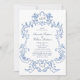 Elegant Baroque Dusty Blue Ornate Ram Bröllop Inbjudningar