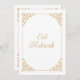 Elegant Eid Mubarak Islamic Flat Helgdag Card. Fira ett glatt och lycklig Eid ul-Fitr eller Eid ul-Adha med din familj och dina vänner genom att skicka ut detta speciella hälsning-presentkort. Den lyxvita bakgrunden av elfenben färg med en guld vintage baroque löv foliage swirrrl i hörnet av gräns ram. Klassiskt guld-skript med kalligrafteckensnitt skrivs fram och tillbaka. Du kan anpassa kortet färg och teckensnittstypen och göra det storlekt för dig. Bästa önskemål. Utskrivbar. Hennes linje för design på Zazzle.