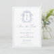 Elegant Baroque Vapensköld Monogram Blue Bröllop Spara Datumet