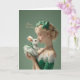An exquisite birthday card featuring a graceful young woman in a green lace gown holding an adorable white bunny dressed to match. Rich textures, soft lighting, and classic fairytale charm create a timeless, enchanting design. Perfect for anyone who loves sophisticated artistry blended with a touch of whimsy on their special day.