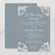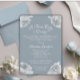 Baby Blue Förlossningsfestinbjudan. Välkommen till en firande av nya början! Denna eleganta baby shower inbjudan har en raffinerad färgpalett i babyblått och mjukt grått som skapar en lugnande och sofistikerad bakgrund. Ömtåliga vita blommor tillför en touch av grace och renhet. Inbjudans enkla men chic design ser till att den sticker ut medan den bibehåller en lugn och klassisk känsla. Perfekt för att hedra ankomsten av en liten en, denna inbjudan sätter tonen för ett charmerande och minnesvärt evenemang.