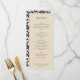 This elegant wedding menu features a clean, vertically oriented layout with ample white space on a soft beige background. The classic serif typography adds sophistication, while dotted lines separate sections labeled in uppercase for clarity. Each dish is presented in an italicized font, enhancing readability and style. Customizable placeholders at the bottom allow for personalization, making this design perfect for creating a timeless and refined dining experience at your special event.