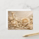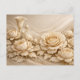 This postcard features a delicate arrangement of intricately layered beige paper flowers, including roses and peonies, with soft wave-like patterns in the background. The design evokes a serene, timeless elegance, making it ideal for weddings, thank you notes, or decorative correspondence.