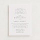 Denna eleganta bröllopsinbjudan har en raffinerad illustrationsskiss över lokalen i kombination med klassisk typografi för en tidlös och sofistikerad presentation. Den handritade illustrationsskissen av egendomen skapar en känsla av arv och tyst lyx, vilket gör designen personlig, genomtänkt och vacker balanserad.