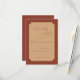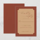 Detta eleganta bröllops-svarskort har en varm, jordnära färgpalett med en mjuk beige bakgrund och rik brun ram. Designen är minimalistisk och klassisk, med fokus på typografi med en elegant scriptfont för "vänligen svara"-meddelandet och rena sans-serif-typsnitt för svarsalternativen. Det innehåller anpassningsbara fält för datum och antal deltagare, vilket gör det både funktionellt och stilfullt. Den övergripande stämningen är sofistikerad och formell, perfekt för att förmedla tydlig kommunikation vid viktiga evenemang.