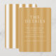 This elegant wedding enclosure card features a classic design with vertical stripes in varying shades of beige and light brown, creating a subtle gradient effect. The warm neutral color palette evokes a sense of sophistication and warmth, perfect for an upscale event. Centered typography includes a prominent serif title "THE DETAILS" and a readable sans-serif body text, ensuring clarity and balance. The minimalist aesthetic focuses on the essential information, making it ideal for conveying important details about your special day.