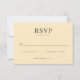Detta eleganta bröllops-RSVP-kort har en minimalistisk design med en mjuk beige bakgrund, vilket skapar ett underdrivet men sofistikerat utseende. Layouten är ren och modern, med fet serif-typografi för "RSVP"-rubriken och enkla, läsliga teckensnitt för svarsalternativ. Dekorativa element inkluderar en stilren kursiv flourish och cirkulära punktpunkter, som ger en touch av förfining. Perfekt för formella evenemang, detta kort balanserar visuellt tilltalande med praktiskhet, vilket säkerställer tydlig kommunikation samtidigt som det bibehåller en inbjudande och formell ton.