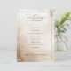 Denna eleganta bröllopsprogram har en mjuk, akvarell-liknande bakgrund i nyanser av beige och ljust brunt, vilket skapar en varm och inbjudande atmosfär. Layouten är centrerad med gott om negativt utrymme, vilket betonar klarhet och enkelhet. Den innehåller en blandning av kursiv och serif-typografi för att guida läsaren genom ceremonidetaljerna, från processionen till recessionen. Designens klassiska och sofistikerade stil blandar traditionella element med modern minimalism, vilket gör den perfekt för en formell firande.