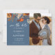 Den här romantiken och eleganten faller i blommigt bröllop spara datum fotokort presenter en botanisk chic av autumnala blommor och grönska i varma toner över en dammig blå bakgrund och är lätt att anpassade med en av dina favoritförlovningar bilder. Det här Spara datumkortet ingår i samlingen "Elegant Autumnal Blommigt Bröllop", med koordinerande element för att skapa en unik bröllop-svit.