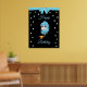 Elegant Birthday-genie, magisk lampa, gems-konetti och turkosa-ribbon på svart Poster. Text kan vara personlig!