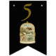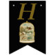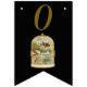 Den här flagga-formade buntbanderollen Grattis på födelsedagen är svart med gyllene brev och en elegant guld och vit fågelburk med en fågel på en gren- och vinterscen av en stuga i snö vid en ström. Anpassa födelseår med mallarna.