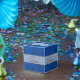 Elegant blå anpassningsbar presentask för bröllop